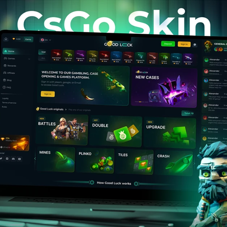 Our skin gaming platform lets players experience the most popular game mechanics like case opening, PvP case battles, upgrader, exchanger, trade-up contract, coinflip, and dice duels on CS2/CS:GO skins. Our skin database contains more than 25K unique items.